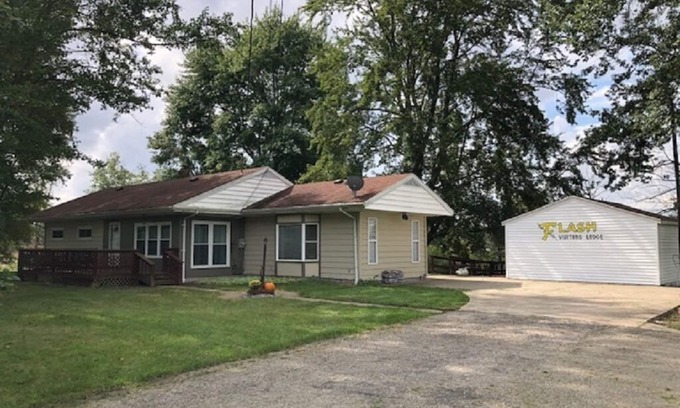 The detached shower house has 3 bathroom stalls and 4 showers separated into men's and women's. There is a nice concrete patio with 2 grills, and a large wooden deck with outdoor furniture and chairs. There are 2 picnic tables in the back yard. and lots of outdoor space! You can relax, or sing around the fire pit (firewood is provided), or enjoy the 19 acre lake or small pond for fishing. The lake is full of bass, crappy, bluegill, catfish, and carp. Fishing enthusiasts be sure to bring your fishing poles and bait. Venture out in our 3 canoes (we have plenty of life jackets). You are located directly on the grounds of the famous Flash Baseball Complex where we shot a film in 2018 with Matthew Modine. This is Baseball Heaven. You are welcome to use certain areas of the Flash facility. These include basketball, volleyball, treated swimming hole, and playsets for the little ones.
