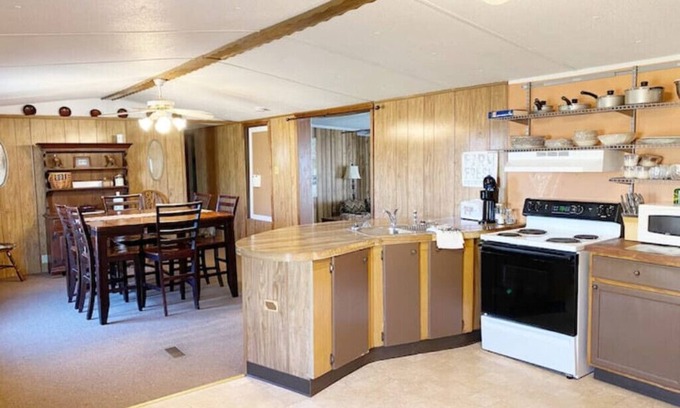 NOW WITH WIFI. Relax and rejuvenate at our quiet country property. The private dirt lane surrounded by hay fields and cattle will welcome you. Our mobile home has been fully renovated and can accommodate your group. With two porches, enjoy sunrises with coffee and sunsets with wine. Pets and children are welcome, but no wandering on the surrounding land.