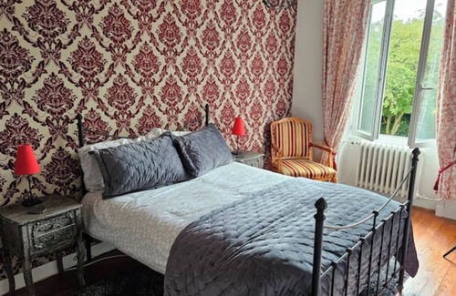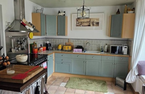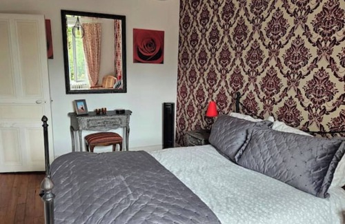 This stylish place to stay is perfect for group which consists of 4 large double bedrooms 2 with ensuite facilities and a downstairs seperate toilet with also a seperate bath/shiwer & washroom facilities. The Annexe has not only the Double bedroom with ensuite but also has its own quiet lounge in the adjoining room all backed onto a private seating area with garden views to help extend the house to 8 guests staying as a group where you can also mingle as one. The property consists of 3 double rooms 1 is an ensuite whilst the other 2 bedrooms share a bathroom shower & toilet facilities, there is a fully equipped kitchen with cutlery crockery pots pans & glassware for entertaining in a traditional French style kitchen with a breakfast table leading onto a dining room and lounge incorporating a TV, dining table to seat 8 and sofas to relax on. The property is situated in around 1 Acre of land surrounded by panoramic views of the countryside with plenty of bike rides which we do have 2 for hire if required and country walks easily accessible 5 to 10 mins walk away. During the better warmer weather there are BBQ areas to use along with a 32ft x 16ft swimming pool open to guests to relax enjoy in and soak up the sun in the peaceful surroundings but also taking in the lovely sunsets at night. We can offer either a continental or full cooked breakfast for an additional charge per person and also a private chef and evening meals included again for an extra fee per person as I'm an ex chef with 35 years experience if you so wanted to just relax and take all your pressures away. let me know if there's anything else you wish to know and we are also pet friendly. we look forward to welcoming you all at the Lions Den @ La Loge in Mantilly Normandy where we are surrounded by historic towns but also quaint market towns with lots to offer for the young or the older person.
