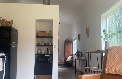 Cook in a fully stocked kitchen or order in and get delivery from numerous local restaurants. We give a shout out to local businesses and offer local roasted coffee, honey from hives just down the road, BBQ sauces and salts. We are open to having a few items ready (upon request) for your arrival so please let us know any dietary concerns (GF/dairy/nut free) and we will attempt to accommodate your needs.