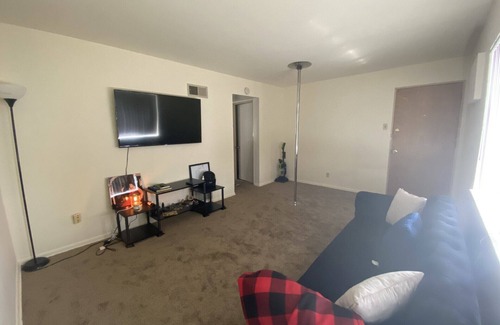 Step into your urban oasis, where comfort and style converge in our one bedroom, one bathroom apartment. As you step through the door, soft, plush carpeting welcomes you, creating a cozy ambiance throughout the space. Natural light spills in, illuminating the inviting living area, complete with a comfortable sofa and a smart TV, perfect for unwinding after a day of adventure. Retreat to the tranquil bedroom, where a sumptuous queen-sized bed awaits, adorned with crisp linens and plush pillows for a restful night's sleep. The bathroom offers a serene sanctuary, with its clean, contemporary design and soothing amenities. Whether you're here for work or play, our apartment provides a haven in the bustling city, where every detail is crafted for your comfort and relaxation.