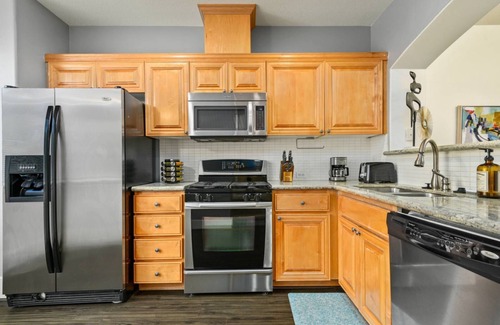 This 2-bedroom, 3-bathroom rental features a living room, a dining area, a sofa bed, and a fireplace. Bathroom amenities include a hair dryer, towels, and toilet paper. The kitchen is equipped with an oven, a stovetop, and a refrigerator, as well as a coffee maker, an ice maker, and a microwave. And thanks to the washer and dryer, you'll even be able to travel light.