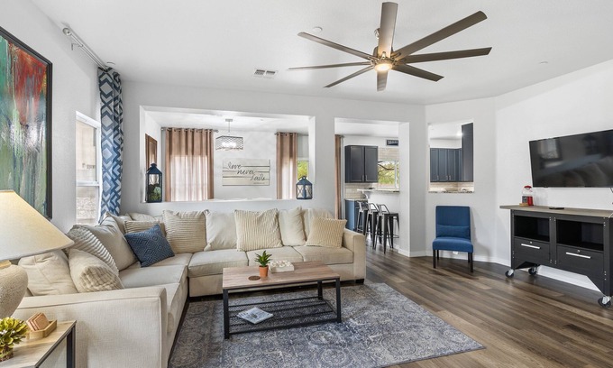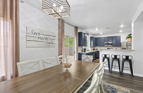 Looking for a clean and beautiful home to relax in NW Tucson? This two story home, sleeps 6-10 people w/ it's King, Queen, 2-twins (plus couches, folding cot and futon available). The upgraded kitchen is beautiful and fully stocked! Park inside the two car garage. Relax in the finished backyard with beautiful, turf pavers, outdoor table and BBQ. The home features a downstairs living room, large dining room and upstairs loft where the kids can play and make some noise! Located minutes from Omni Resort and close to many options to shop and eat, you'll love the location in a quiet neighborhood.
