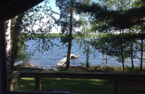Lakes on either side of the cabin and loons to lull you to sleep nightly. Enjoy viewing much wildlife such as loons, beavers, eagles, trumpeter swans, deer, ducks, turtles, and lots of other water fowl and more! Great retreat for spring, summer or fall! Amenities include a gas or a charcoal grill, fully equipped kitchen with a microwave, coffee maker and a Keurig, toaster and blender. Air conditioner, full bath, large living area with T.V Roku, blue ray player, DVD and WiFi. Campfire spots in 2 areas with all the firewood you need to roast your marshmallows or hotdogs. A 14’ fishing boat with a 15 horse 2018 Mercury motor is available for a fee of $300 weekly or $50 daily to be paid upon arrival if needed.
