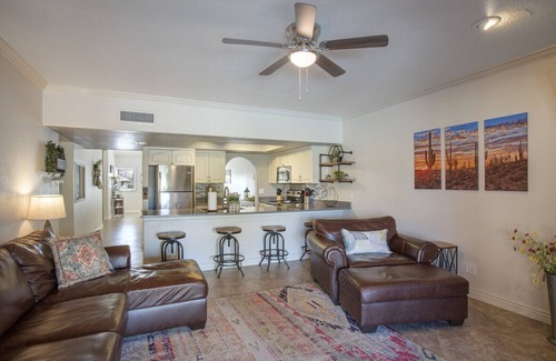 Quiet Desert Oasis on Golf Course w/Heated Pool is located in Dobson Ranch. Quiet Desert Oasis on Golf Course w/Heated Pool provides accommodation, featuring Guest Services, Private Pool, Barbecue/Outdoor Cooking, among other amenities. This House features Guest Services, Private Pool, Barbecue/Outdoor Cooking, to make your stay a comfortable one.
