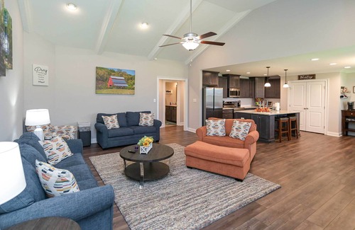 Make lasting memories with the family at this 4-bedroom, 2-bath home in Hazel Green. Situated just a short drive from Huntsville, this vibrant vacation rental offers a peaceful home away from home while being close to city attractions and state parks. Go hiking or biking in Monte Sano State Park, tour the U.S. Space & Rocket Center, and sip on a local brew while dining out. At day’s end, retreat to a cozy, spacious interior, complete with a full kitchen, a fireplace, and Smart TVs in every room!