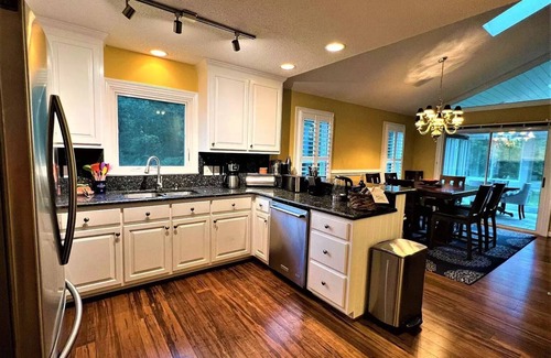 Indoor Amenities - 6 TV's w/ Roku; Gas fireplace in LR; downstairs game room (pool table, dart board, ping pong, checkers, TV); 4 Seasons Sunroom (gas grill); washer & dryer; sheets, towels, hand towels, wash cloths, lake towels, kitchen towels provided. 2nd refrigerator in the garage.