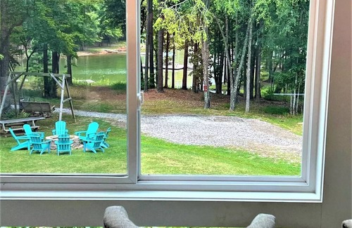Outdoor living - Porch with gas fire, fire pit, playset, swing, private dock (for boat and jet ski), basketball, canoe, outdoor games.