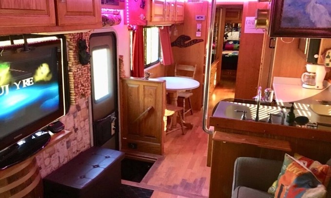 Enjoy our Monaco40 in which we have crossed the country many times. Air conditioned, Serta perfect sleeper bed with 3 inches of gel memory phone. Close to world class beaches, private parking, 42 restaurants deliver to this address. Peddle boat, bikes and two kayaks available for use. Rental car available. We welcome all, black, gay, white, hippies, nudist you will find sanctuary here. Veteran owned.