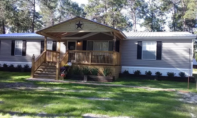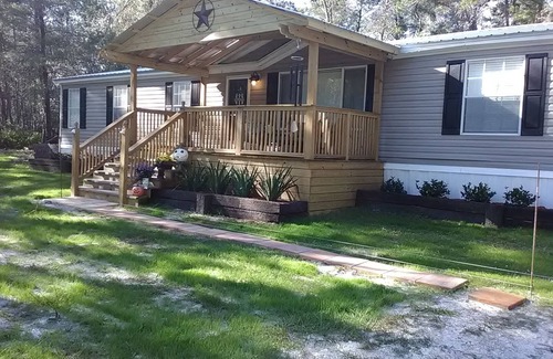 This gem is located in Floroda's Etoniah State Forest. The property is surrounded by quiet woods with occasional visits from deer and other forest animals. Relax on the front or back porches and enjoy the sounds od nature. The fire pit is nice evening entertainment. Home has recently upgraded bathrooms and kitchen. Smart TVs in all bedrooms and living-room. Internet available. Park offers hiking and horse trails. Perfect getaway from the hustle ans bustle of city crowds.
