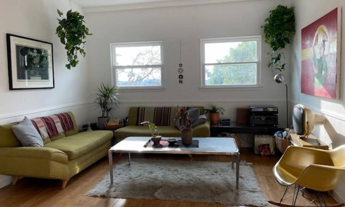 VINTAGE MID CENTURY MODERN furniture, PLANTS and ART filled hilltop Los Feliz /Silver Lake private downstairs guest house with SPECTACULAR SUNSET VIEWS. PRIVATE BACK YARD and deck.