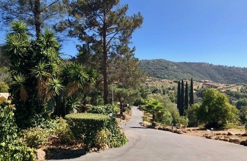 Hilltop guest house with easy access to I-15 freeway. This two story, fully furnished house with spacious rooms and beautiful views from both levels has two balconies and sits on three acres of avocado and fruit trees. Has gazebo, fountains, 20x40 pool (not heated and not warm enough for swimming November to early June), private patio overlooking valley and hills. This vacation home offers you the choice to just relax and enjoy the quiet, beautiful area or you are only four miles from the freeway and all that San Diego and Temecula have to offer. Beaches 20 miles away. Seaworld and Zoo 40 miles away. Wild Animal Park 30 minutes, and Disneyland only 75 miles away.