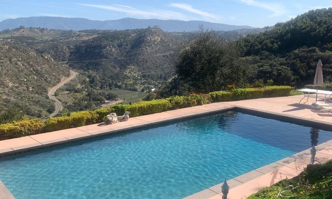 Best-rates for the Valley Center house starts from $292 per night with includes View, Wellness Facilities, Child Friendly, Internet, Laundry, Parking, TV, Private Pool, Fireplace/Heating, Air Conditioner, Other, Pool, Balcony/Terrace, Barbecue/Outdoor Cooking, Kitchen, Ocean View, Security/Safety, Sports/Activities, Bedding/Linens, Entertainment with all other amenities. Perfect for Weddings is committed to ensuring every guest experiences a comfortable and extraordinary stay, whether planning a romantic getaway, a honeymoon, a pet-friendly stay, or celebrating with the entire wedding party.