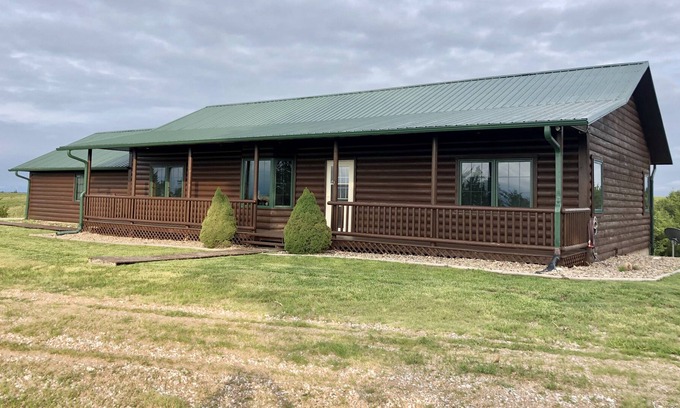 Welcome to Windsor Woods. This 3 bedroom, two bath log cabin style home sits in a private setting located just south of Franklin on 42 acres. Enjoy mother nature, try your luck on the public hunting ground minutes away or drive 20 minutes to Harlan County Reservoir. This Republican River Valley hilltop cabin has a lot of offer. The Pendleton Suite has a king bed, nightstands, a computer desk and it’s own bathroom with shower. Bedroom A has two bunk beds with fulls on the bottom and twins up top. Bedroom B has a bunk bed with a full on bottom and a twin up top. There is also a stand alone twin. Attached two car garage, 12x24 entertaining deck, large covered front porch and a fully operational kitchen.