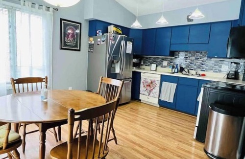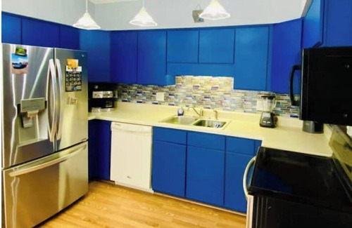 The house is set up for long term guests. The kitchen is vibrant and has everything you need to cook or just reheat. There is a washer and dryer for your use as well. The rooms have blackout curtains for those days you need to sleep.