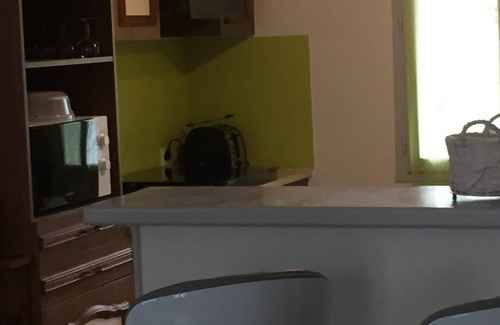 - open kitchen equipped with: fridge; 4 gas fires; microwave-grill oven; electric coffee maker ; electric kettle ; toaster