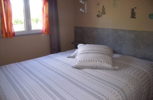 Our cottage can accommodate 4 people is composed of a large main room with a fully equipped kitchen with fridge, microwave, hob, toaster, "SENSEO" coffee maker, kettle and teapot, table and 4 chairs, crockery and kitchen utensils for 4 people, convertible sofa for 2 people, coffee table, 2 poufs, storage unit with shelves, drawers and wardrobe, 1 bedroom with queen-size bed, bathroom with sink and bathtub, hairdryer, wc and storage unit, all overlooking a terrace with garden furniture for 4 people