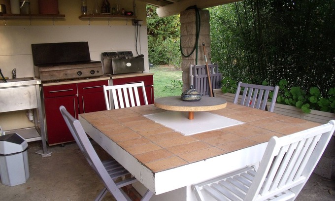 A summer kitchen under a patio is available free of charge with plancha, fryer and garden furniture for 4 people.