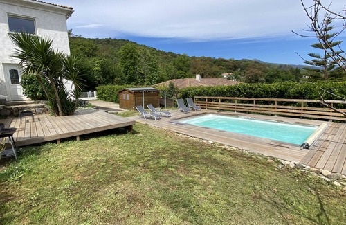 Quiet house with pool is located in Casamozza. Quiet house with pool provides accommodation, featuring Bedding/Linens, Parking, Private Pool, among other amenities. This House features Bedding/Linens, Parking, Private Pool, to make your stay a comfortable one.