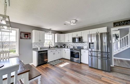 Farm sweet farm! Head to Berry, Kentucky, for a rural retreat at this contemporary farmhouse-style vacation rental! This home is equipped with a full kitchen, space to dine in, 5 bedrooms, and 3 bathrooms, making for a perfect group getaway! Enjoy roaming the peaceful property to fish at the pond, feed the cows, or have a barbecue on the deck. For a nearby excursion, head to Lexington to sample some bourbon or go boating under the summer sun at Kincaid Lake.