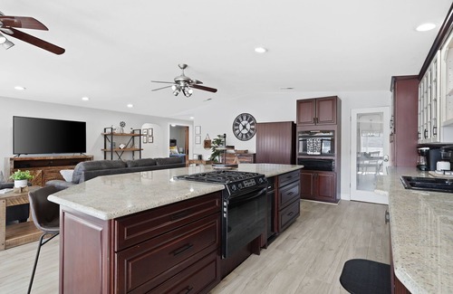 • Living Room: Sofa bed + air mattress (sleeps four total)| 65” Smart TV | Bar area | Sliding door to covered patio & private dock with oilers for charging
