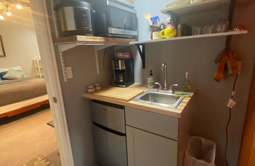 KITCHENETTE: A kitchenette is off of your bedroom equipped with refrigerator, microwave, toaster, coffee pot, burner and instapot.