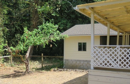 A simple cottage built in the 1950's, Woodland has been 100% renovated to modern standards. Wifi, basic cable, Sony smart tv, dvd player, washer/dryer, microwave. Covered porch with forest views. One master queen bedroom (1 or 2 people) with full bath adjoining. One twin bedroom suitable for one adult or children. Ample parking for large vehicles or trailers. *Sorry, no pets*