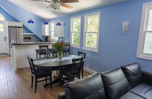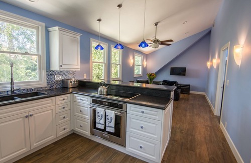 Stay at our newly constructed, one bedroom apartment located just minutes from downtown Los Gatos. Located on the second floor with a private deck offering a scenic views to enjoy your morning cup of coffee. All brand new appliances, furniture and fully stocked kitchen. Sleeps up to 3 guests, one queen sized bed and one pull out couch. Full size washer and dryer also included in the apartment. Cable TV and Wi-Fi internet included. Gorgeous executive apartment with all the latest high end amenities setting on a country estate property within walking distance of downtown Los Gatos. It is an extremely private setting along a serene creek in the the middle of a valley surrounded by mountains. Enjoy luxury living with the best of everything.
