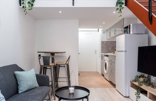 Beautiful studio with mezzanine, completely renovated, air-conditioned and decorated with care.It is very quiet as it overlooks an inner courtyard and is ideally located in the city centre. It has a living area with sofa, television and a small dining area (high table and stool). There is a small balcony with a table and chairs to enjoy a coffee in the sun! The kitchen, open to the living room, is fully equipped with a hob, fridge, microwave, washing machine and Nespresso coffee machine. The sleeping area is in the mezzanine with a double bed and a chest of drawers to store your things. The separate bathroom has a shower and toilet. Bed and bath linen is provided by a professional service provider, as well as welcome products for your arrival (small soaps, coffee), and a free Wifi internet connection.The products at your disposal are indeed welcome products, to allow you to arrive in peace. We cannot guarantee that they are sufficient for the duration of your stay. It depends on your personal consumption. You will be ideally located: - Tramway line 1 (from/to Nice Ville station): Garibaldi stop at 500m- Tramway line 2 (from/to the airport): Durandy stop at 400m- Place Garibaldi: 500m- Vieux Nice: 400m- Place Masséna: 800m- Avenue Jean Médecin: 700m- Promenade des Anglais and beaches: 1km