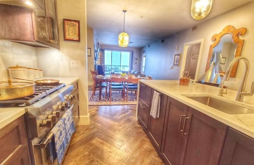 This property has been tastefully remodeled with elegant touches throughout. From the warm, herringbone wood floors to the white waterfall kitchen/bar counters, you'll fall in love with the attention to details that has gone into this space.