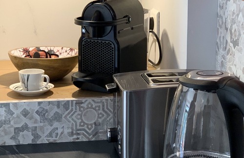 A living room and a fireplace are featured at this 4-bedroom, 1-bathroom rental. Bathroom amenities include a hair dryer, towels, and toilet paper. The kitchen is equipped with an oven, a stovetop, and a refrigerator, as well as a coffee maker, an electric kettle, and a microwave. And thanks to the washer and dryer, you'll even be able to travel light.