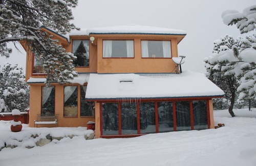Newly remodeled kitchen (Dec. 2023). Two story with living space upstairs with beautiful mountain views and large deck. Mountain home is on 2.5 quiet acres of pinion and pine trees in the foothills of Taos Ski Valley. Short drive up the mountain to Taos Ski Valley and 10 miles North of Taos Plaza. Less than 4 miles to awesome restaurants. Peace and quite with access to Summer and Winter outdoor activities. Summer hiking, biking, fishing, golf, sight seeing or just relaxing to escape the heat! Hot Tub and bocce ball court on property. Incredible stargazing.