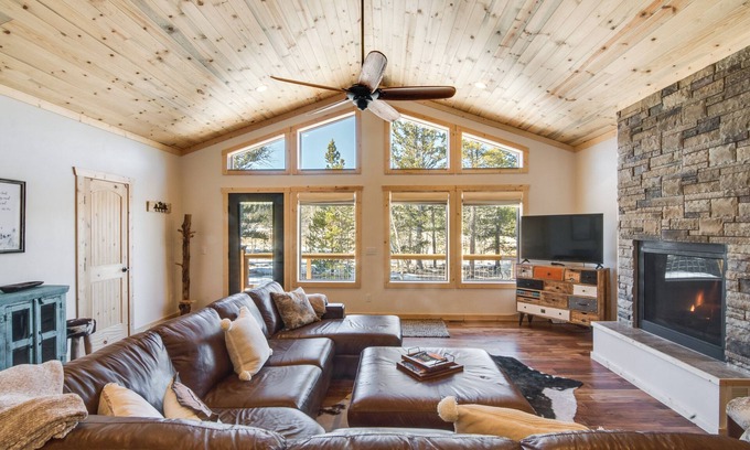 Whether it’s hiking and biking or snowshoeing and skiing that brings you to Fairplay, this spacious 3-bedroom, 2-bath cabin is the perfect launching point for your next adventure. Within minutes, you can enjoy recreation at Fairplay Beach, hike at Quandary, or visit the shops, slopes, and breweries in Breck. When you’re not seeking thrills, return to the cabin, equipped with at-home comforts ranging from a Smart TV and full kitchen to a peaceful outdoor space to relax with your crew.