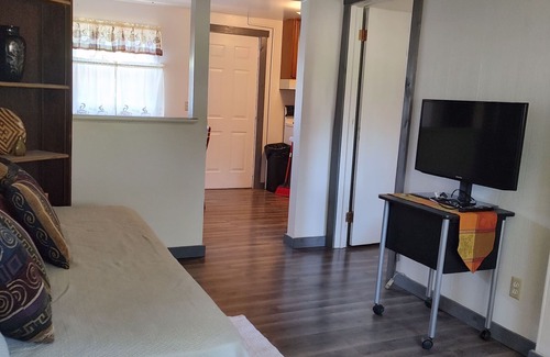 Quiet location near gas station, grocery store and restaurant and bar. Safe walking distance, clean,fully furnished with full kitchen,tv, and great for family eto hunting or passing.