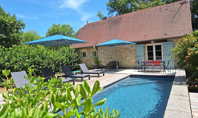 Do you like calm? Long summer evenings by the pool? Admire the sunsets, lying on a deckchair? Then this vacation rental is for you. Nestled in the Lot countryside, on the Quercy plateau, this dry stone house offers 2 master suites and a swimming pool, all completely private. Isolated location, not overlooked, surrounded by greenery, at the exit of Goulème, a small hamlet 3 km from Concorès where you will find the essentials and 10 km from Gourdon. You will stay there in peace, all year round. You will be between Cahors and Sarlat, in the heart of tourist poles, such as Rocamadour, Padirac, St Cirq Lapopie, Beynac, Laroque Gageac, The Pech Merle, Cougnac caves, Lascaux caves ... Boat or canoe trips in Lot and Dordogne, visits to castles (Beynac, Marqueyssac) and places steeped in history will be on the menu for your activities.