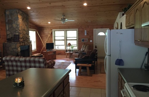 The cabin's 3 bedrooms, 2 full baths has everything you need. Fully furnished with bedding and bath towels, fully furnished kitchen, clothes washer/dryer, central heat and air conditioning, ceiling fans in all rooms, stone wood burning fireplace, propane gas grill, hanging swing and rocker on front porch, or enjoy the outdoor fire pit.