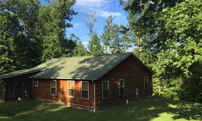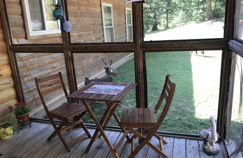 Time to get away from it all? This is the place! Come visit and enjoy the serenity and peaceful atmosphere of this log cabin. It's nestled in the woods and there's lots of greenery and wildlife - deer, turkey, rabbits, birds.