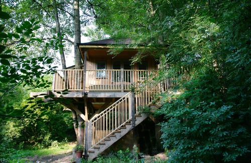 The Old Mill Lodge is approx 15 metres away from the treehouse, but trees and shrubs keep things private for guests.