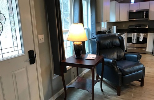 This unit is located near the Wood Creek Boat dock. (Wood Creek Lake is a small lake in Laurel County, KY; there is no high speed boating, skiing, tubing or jet skiing) There are two bedroom with one having its own half bath. There is a great kitchen with plenty of pots and pans so that you can prepare your meals but if you want to travel to London it is only a short drive away. Located on 10 acres there is a short trail to walk down to the lake and there are woods to explore. There is parking for trailers but it is not right next to the cottage, it is about 250 feet away. Come spend a weekend, a week or a month in this lake front paradise. There are two similar cottages on the property for groups of up to 18. Winter guests should be aware that we are unable to remove snow from the walks and driveway so you stay at your own risk. Kentucky often has very mild winters so feel free to book your winter getaway with knowledge that if a snow storm is predicted for the area that you may cancel and receive a full refund if you cancel before your check-in date. If you must leave during your stay because of winter weather we will refund the daily rate for any days left in your stay but know that VRBO does not refund their fees when there is a partial refund. If you brave the snow it is beautiful down here. The property is also secured by cameras, one is located on a tree across the driveway capturing the front of the cottage. The other is on a tree behind the cottage capturing the parking area and rear of cottage.