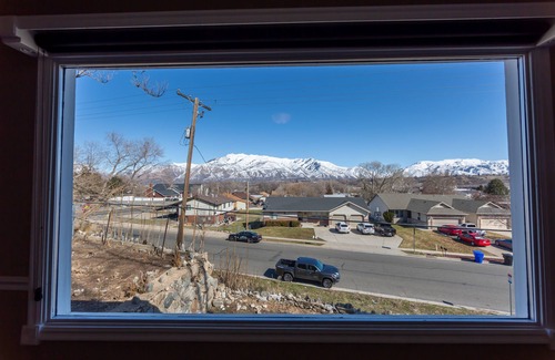 The open kitchen features modern amenities, and the family room is an additional bonus room, providing the perfect space to relax and unwind with a beautiful view of the Wasatch Front mountains. Step outside onto the beautiful patio and deck with a BBQ, making it the perfect space to enjoy the outdoors. The house has just been completely renovated, including new floors, cabinets, paint, and new everything from silverware to all furnishings, mattresses, and bedding, ensuring a comfortable and enjoyable stay.