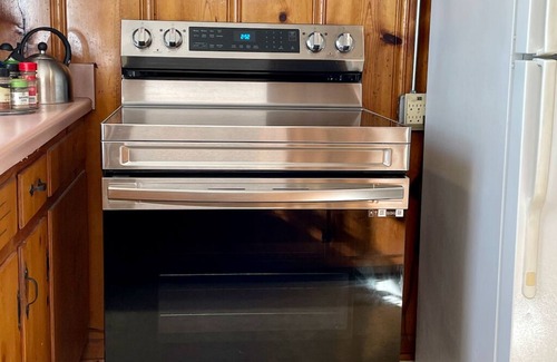 The house is fully furnished, clean and well-maintained, with new central air conditioning and heating. All the bedrooms have overhead fans. The three bedrooms can sleep 5, and a futon in the den can sleep 1-2. There's a full bathroom near the bedrooms and a second bathroom off the den at the other end of the house.