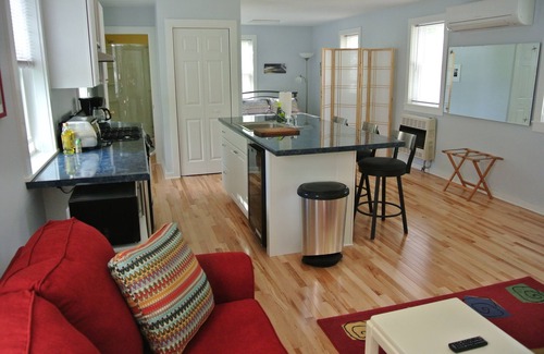 This studio suite can sleep 2 to 4 people, is newly built, with a complete kitchen, washer/dryer, air-conditioning, cable tv, internet, pull out sofa, designated parking spot for one car, BBQ area, miles of hiking trails across the street with saltwater marsh & waterfalls. Centrally located to downtown Portland, ferry service to the Islands, swimming, sailing and all of coastal Maine. Portland License # STHR-004156-2022
