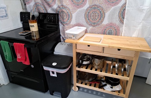 With the private outdoor patio, outdoor camping stove, and firepit - It feels like you are camping, but with extreme comfort. Guest(s) is welcome to roam in the yard and stay in either firepit or the japanese deck. Both areas are great relaxing place to hang out as you listen to birds singing, winds blowing, and squirrels playing.