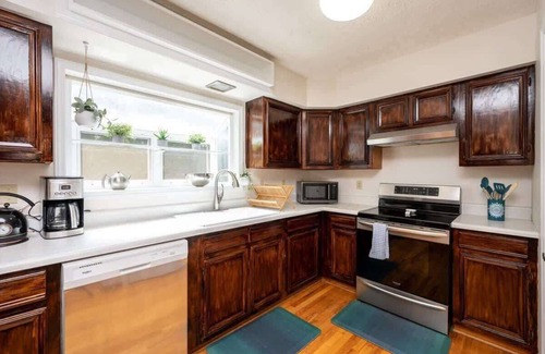 We have high speed internet through Spectrum and two smart TVs (one in the living room and one in the downstairs bedroom) that can access cable and you are welcome to log in to your streaming services. Great for remote work or a comfortable stay on a business trip. Home is stocked with fun games and books and we have a drawing table and easel you are welcome to use. You are also welcome to use our Peloton bike and yoga mat/blocks when here. Need baby stuff? We can help! Check with host on booking. Small crib and high chair are available.