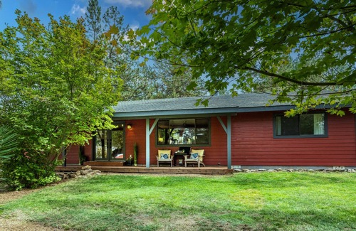 - Ponderosa Lodge + Bend, OR + Sleeps 10 + Pet Friendly + Large yard + RV parking