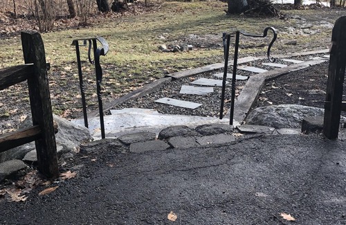 Guests can access the unit through the side yard where there is a lit path leading to a private entrance. Please note that there are stairs and a sloping pathway, therefore if you have walking issues or are handicapped, this may not be the property for you. The owners occupy the upper level of the main house, but you will not see them unless you need assistance.
