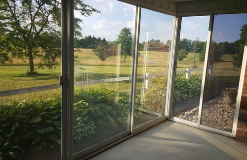Located on 64 acres in the center of hay fields this property offers spectacular views of wildlife. Deer can often be seen foraging from the enclosed rear patio. The enclosed front patio offers beautiful views of the sunset. There is a well equipped kitchen and also an outdoor patio with grill and fire pit for cooking out. A large pond is available for fishing. If you prefer to relax indoors there are two smart tv's and free wifi. One king size and one queen size bed offer a comfortable nights sleep. This home is also located near Ashland University , Rockin T Ranch, and Dragway 42. We are trailer friendly. Just let us know your bringing a rig. If your looking for a little peace and quiet this is the place to be.