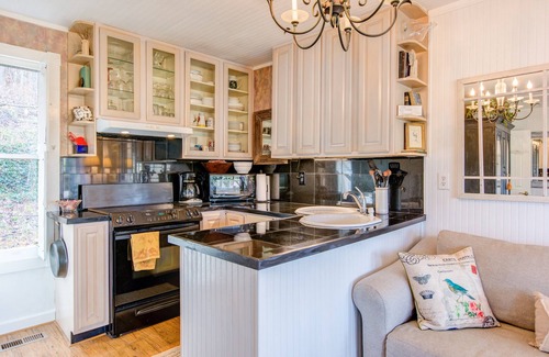 This charming cabin is equipped with features that make it not just a place to stay but an experience to cherish. Enjoy a spacious porch with a 180-degree view of the majestic mountains, where you can host outdoor ceremonies or cocktail hours. The property boasts easy access to a private organic garden, a fire pit for evening gatherings, and inviting swings near the gentle sounds of flowing water. The interior is designed for comfort and relaxation, ensuring you and your guests feel at home throughout your stay.