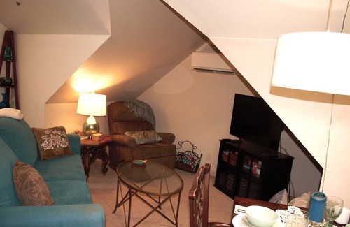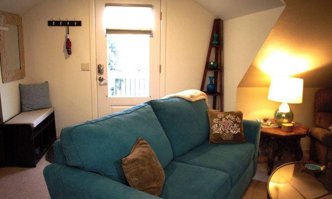 Whether you're coming to Salem, Oregon, for business or pleasure, The Attic Apartment at Ewald House will provide you the ideal "home away from home". This superb space features a cozy living room with a sofa bed, perfect for relaxing after a day of work or exploring. There is a cozy dining table with 2 chairs and a sideboard in a corner of the living room area. Your kitchen is equipped with everything you need to prepare and serve a full mean, or just make that superb morning coffee and toast a bagel to get your day started. The bedroom boasts a comfortable queen bed, large walk-in closet, and a built-in work desk that includes free high-speed internet, We've provided black-out curtains if needed, ensuring a good night's or day's sleep. Thanks to the lovely branches of our 200-year-old Douglas Fir that are right outside your bedroom windows, you'll think you're sleeping in a tree-house. Amenities like WiFi, AC, and a no-cost laundry room on the ground floor, ensure your stay will be convenient and stress-free.