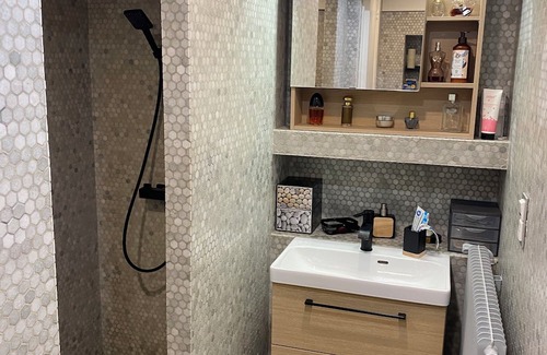 - 1 master suite with 1 Queen-size bed (160x200) - TV - bathroom with bathtub-shower and double sink.